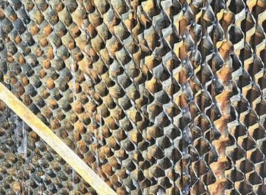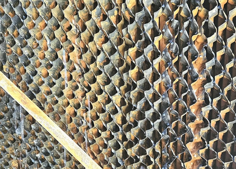Penumpukan kerak (scale) dan lumpur (sludge) adalah masalah umum yang menandakan perlunya penggantian filler cooling tower.