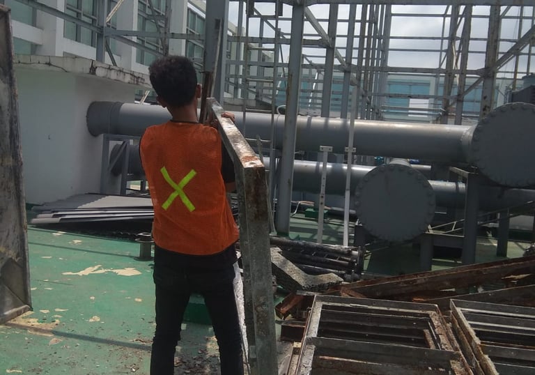 Unit cooling tower yang baru terpasang seringkali masih mengandung residu atau partikel halus sisa dari proses perakitan, seperti serpihan las, debu, atau minyak. Jika tidak dibersihkan, partikel-partikel ini dapat: