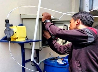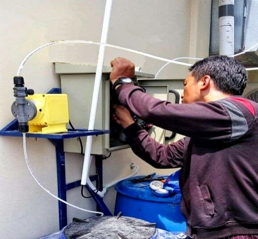 Dosing pump untuk menginjek chemical secara otomatis, mengurangi kerja operator.